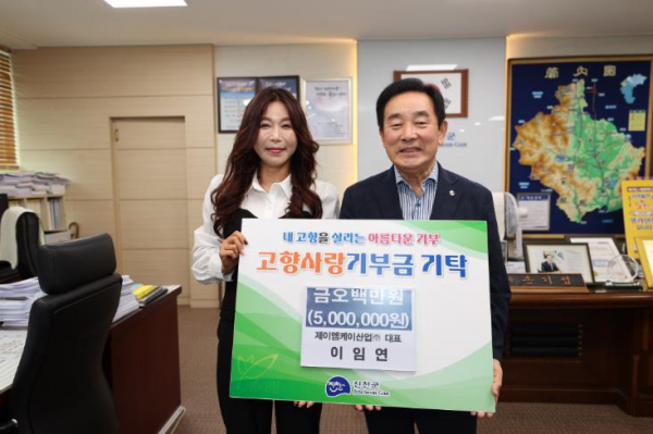 [한국장애인뉴스 김정은 기자] 이임연 제이엠케이산업㈜ 대표는 6일 진천군청을 방문해 군민의 복리증진을 위한 고향사랑기부금 500만 원을 전달했다.