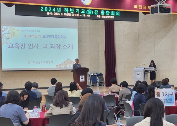 [한국장애인뉴스 이남일 기자] 경기도성남교육지원청은 9월 9일, 10일 양일간 국립국제교육원에서 관내 유·초·중·고 학교(원)장, 교(원)감을 대상으로 2024 하반기 통합회의를 운영했다.