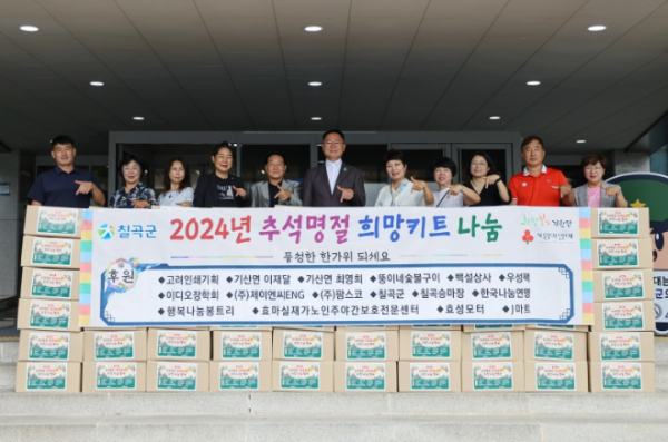 김재욱 칠곡군수는 “소외계층의 풍성한 한가위를 위해 어려운 경기에도 후원을 아끼지 않고, 지속적인 후원으로 나눔문화 확산에 기여해주신 후원자분들께 깊은 감사의 말씀을 드린다”고 전했다.