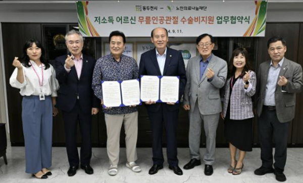 [한국장애인뉴스 김지선 기자] 동두천시와 노인의료나눔재단은 지난 11일 취약계층 어르신 의료비 지원 사업 추진을 위한 업무협약을 체결했다.